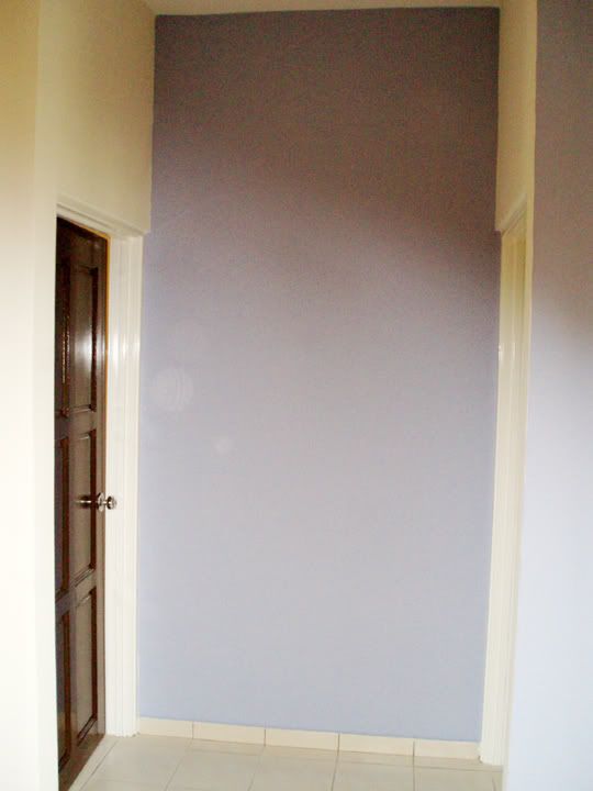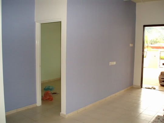 紫色那墙是预备用来放电视机的.为了能省点钱所以全屋的漆都是自己油的