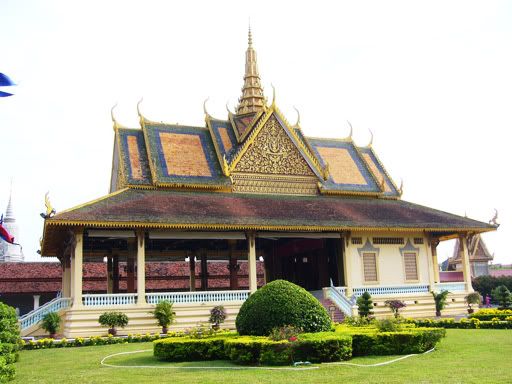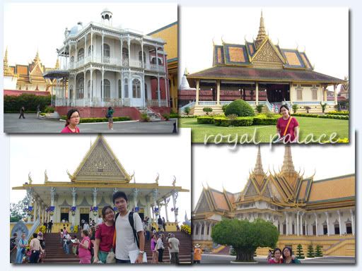 接下来只是今天唯一完整的一站,Royal Palace + Silver Pagoda。我们到时,已经三点半了,真无奈。买了入门票(一人USD 6, 好像很贵),就请去参观。其实这里就是金边王室的王宫,进来就是看看那些金碧辉煌的宫殿,其实也没什么特别的东西。但,还是拍很多照片。