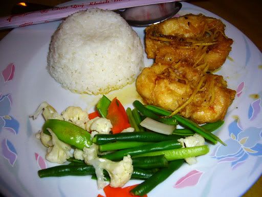 放下了行李,当然是除去找吃的,顺便去预订各两天后回来胡志明的住宿(大家都不愿意住回那间‘黑店’,哈哈)。在De Tham Street,有很多餐馆,我们就选了一间以西式越南餐为主的 Restaurant 333。这里的食物价钱中上,食物也没比柬埔寨的好吃。这一餐,我点了柠檬奶油猪扒饭 (30,000 Dong)和Cononut Shake (12,000 Dong)。