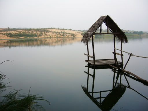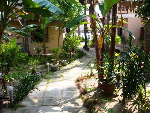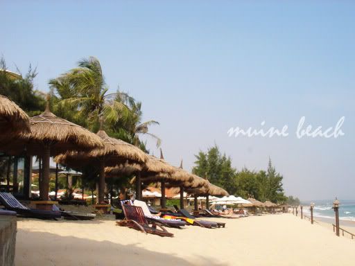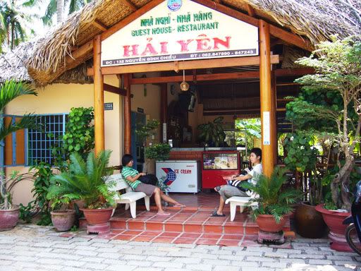 早上6点多,我们就起床了。下了楼,发现那凶巴巴的屋主不在,只有一位老婆婆在。应该是屋主的妈妈吧,她就看起来很友善,一直面带微笑,我们也有谈了几句,感觉还蛮亲切的。最后,还是婆婆开门让我们离开的。背着大包小包的,我们去Sinh Café 前等巴士。七点半,巴士到了,我们就上巴士继续睡觉。下午2点,我们才到梅内,巴士停我们在梅内Sinh Café 售票处,也是Sinh Café的酒店/餐厅前。其实Mui Ne市区就只有一条路,全程大概有几公里,两旁都是酒店旅馆和餐厅,游客地区,白沙丘等景点区就在比较远。比较高级的酒店多聚在南部,自然的游客也比较多,比较热闹。北部就有比较多Budget Hostel, 比较靠近Sinh Café 车站。一下车,就有些摩托骑士上前来问我们: “Wanna go to see White Sanddunes?”我们一直推说不要,就一直走去找住宿。最后我们决定了住在 Hai Yen Guest House (从Sinh Café 步行几分钟就到)。这里的房间都是比较像resort,一间房有两张双人床,有厕所,但是没有冷气。后面就是Hai Yen的海边休息处,还蛮舒服的。我们拿了两间一样的房间,3人的算USD10 而 2人的算USD8,好便宜。这里的人都很友善,然我们感到很舒服。缺点只是晚上比较热。