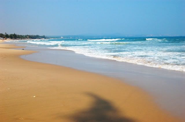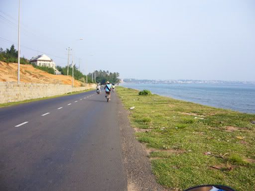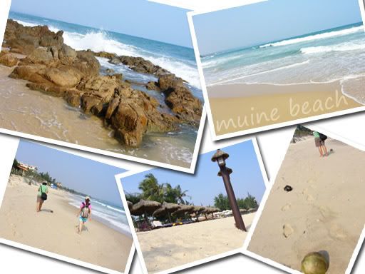 吃完聊完后,还剩下整个下午。我们决定了再租摩托车出游,这次要去找梅内的沙滩。但是我们5人当中只有2人会骑摩托,而且摩托车只能坐最多两人。没办法,跟Hai Yen租了两辆摩托,分两趟载。我们跟着地图,往南行驶。每隔几公里,我们就停下来等其中一人回去载剩下的kevin。 这样的行程重复了3次,终于我们停在梅内南部的海边。泊好摩托车,我们就步行走进去梅内的海滩。其实这里的海滩都被酒店买下,只有从旁边绕道进来,才可以来到这里的海边。来了两天,现在才发现梅内的海滩还真的不错。