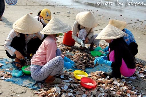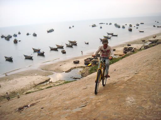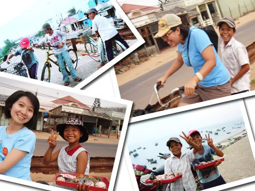 一群当地小孩在这里买手工艺品,但们很可爱且友善。我们没有向他们买东西,但是他们还是很喜欢跟我们玩,一大群小孩围着我们,更我们借脚车来骑。有个小女孩还送个很美的贝壳给我们。看到他们那么开心,我们的心情也便开心多了。其实相比柬埔寨的小孩,越南的小孩开心多了,他们的童年是快乐的。而柬埔寨的大部分小孩比较穷,所以他们为了学会保护自己和喂饱肚子,从小就跟同胞相争,向外来游客乞讨而丧失了最重要的童真。