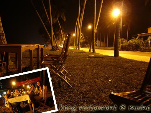 想要出去吃晚餐,可是我们向南走了很久,还是没见有餐馆。原来多数的餐馆都在比较旺的梅内南部。根本没力气走那么远,只好看到餐馆就停下来看价钱。最后,我们停在 Keng Restaurant, 其实周围都没有其它餐馆,感觉整条街都很冷清。原来今天是Keng Restaurant第一天开张,我们还是他们的第一台顾客,看来他们招待我们时也特别紧张。Keng的餐桌在露天靠海的一旁,而厨房就在隔了一条马路对面,坐在这里其实还蛮舒服的,虽然只有我们一桌顾客。