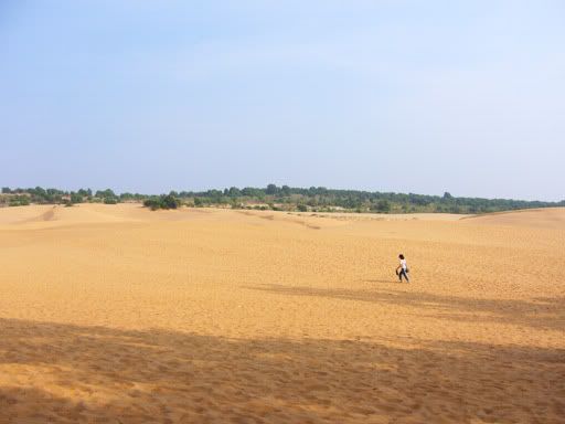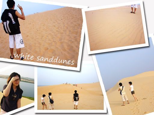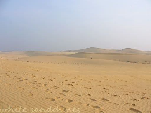 走了一会,我们终于到了期待已久的白沙丘。原来这里真的很美哦!一大片白沙丘,好像小沙漠似的。只可惜一大片的白沙,我的小相机拍不出它的美。真希望有架SLR。无论如何,还是贴上了几张照片。