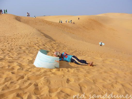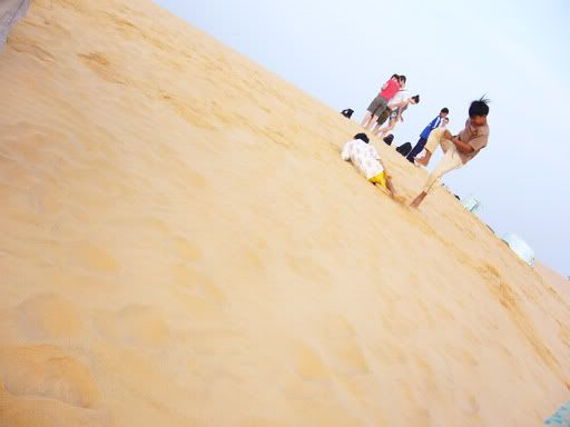 这就是所谓的Sand Surfing。还蛮好玩的,可是记得跟那几个小孩谈好价钱,不然会被砍得一颈血。别看他们小小的,还真会做生意。