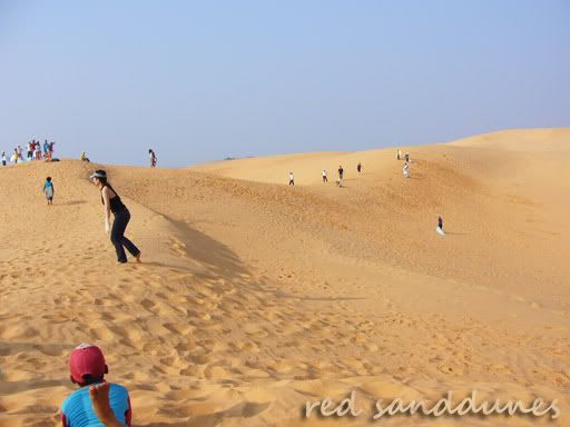 在这里逗留了很久, 都不舍得离开。原因是这里太爽了,风也凉凉的,好舒服。拍了很多照片,虽然大部分都不美的,但还是甘愿了。接下来一站是红沙丘。顾名思义,就是沙色偏红的沙丘。这里比较多外国游客,不像白沙丘那般的安静。事实上旅行团的配套只会来这里而不去白沙丘,可能是白沙丘比较远的关系吧。