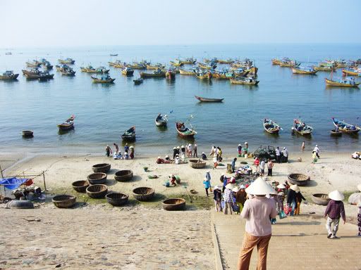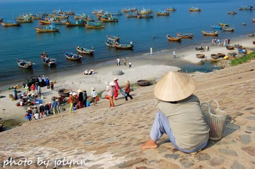 吉普车继续向前走,好像兜了个大圈,我们又来到了梅内的渔村。但是这一趟,和昨天傍晚来看有着不同的收获。我们刚好看到了梅内渔民捕鱼归来的情景!海边停泊了好多渔船,每艘船只都带回来好多海产。此刻,渔民的心情是兴奋不已的。越南姑娘都戴着越南斗笠,有的在炎炎日下把海产分类,有的就开始出售鱼类,像巴刹那样,好不热闹。看到了当地人的生活,不仅感动了起来,毕竟这是他们最真实的一面。没有后悔来了梅内渔村两趟,真的让我看到了很多东西。