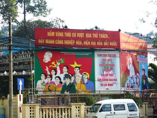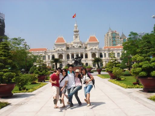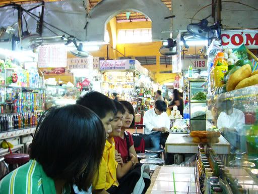 10点左右,巴士停在Kampong Thom休息,这里的人就不太会英语,路边摊买法国面包的大姐也不明白我们要什么,我们只好比手划脚的。最后我们成功买到了。哈哈。这位买面包的大姐很老实,以当地价卖给我们,比起暹粒的便宜许多。中午12.45分,我们到了金边Mekong Express办事处。原来我们得在金边转巴士和办入境越南手续,Mekong Express工作人员须先检查我们个人护照和入境表格,再需交由巴士小姐保管。Mekong的人都很好,还帮我们把背包和行李搬到另一辆巴士。在这里逗留了大概30分钟,我们又换上了另一辆巴士前往越南。其实这一天还蛮累的,一整天就在巴士上,就看了一大堆柬语版的卡拉OK VCD, 和看了套柬语版的<逃学威龙>。晚上7点半,我们才到达胡志明市!街上是赛得水泄不通的,但是越南人的驾驶技术也不是赖的,左穿右插,大家都差点撞到大家似的,还能前进。最后,巴士停在了 Bui Vien Street(胡志明市Mekong Express Office附近)。
