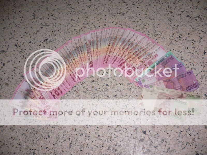 今天到Jusco 逛街,顺便去兑换印尼币 RM1=3280rp, 结果我换了RM1000=3280,000rp,顿时当上了百万富翁来。
