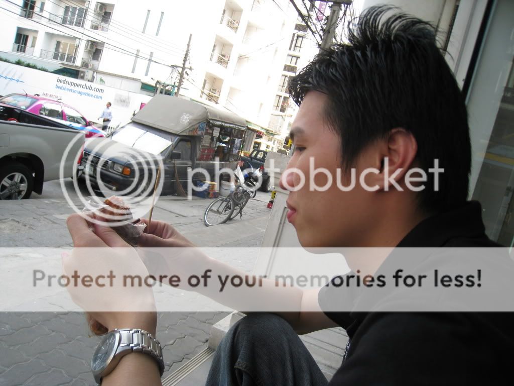 我住在SUKHUMVIT11的 SWISS PARK HOTEL, 两分钟就可以到达NANA BTS STAION, 超方便的。。 到了酒店后,肚子已经呱呱叫了,放了行李就立刻跑下街去找吃的。 还好整条街都有大大小小的档口,也有一些CAFE和餐厅。 其中最常见的是BBQ 之类的食物,我们买了炸鸡和烧鸡腿就坐在路边吃了,反正也没人认识,暂时不必顾仪态了吧! 在街边你也会看到一瓶瓶装好的橙汁,买了一瓶,喝了一口,怎么味道怪怪的,明明他说是ORANGE JUICE。。 看了看他们的橙子,原来是我们所谓的柑。。 味道也还好,可以尝试一下。。