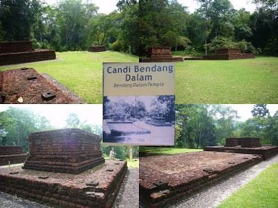 TheCandi Pengkalan Bujang has a cruciform shape, i.e. it's in the shape ofa cross. The middle of the temple is hollow, and it's believed tocontain a stupa with a domed roof, a place where Buddhistrelics are kept, supported by the find of a host of Buddhist relicsnear the site. It's made from bricks with a chiselled granite base. Andlastly, there's the Candi Bendang Dalam:
