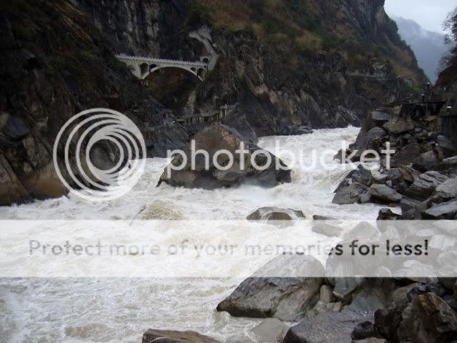 在我们到来之前这里已经下了整整一个星期的雨了,所以虎跳峡的白浪更是澎湃汹涌,涛声震大。
