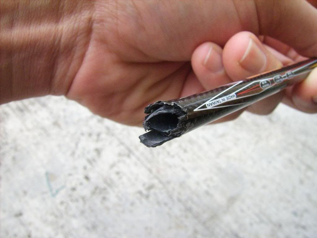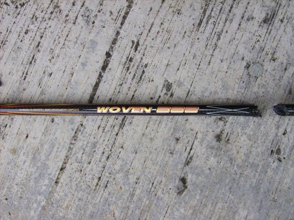 昨晚拿去JB 的permai sport了,老板说这种断法99.9巴仙有的赔。他说最新的一批货就没有问题,因早前fleet的拍是找别厂代工的,现在是自己做,所以品质比较好。我也顺便问了一下apac那些买一送一的拍没有敲到忽然断了是不是有的赔,他说他也有两支断了,但却没得赔。在这里劝告那些买便宜拍的球友买拍时要三思而行了。 |