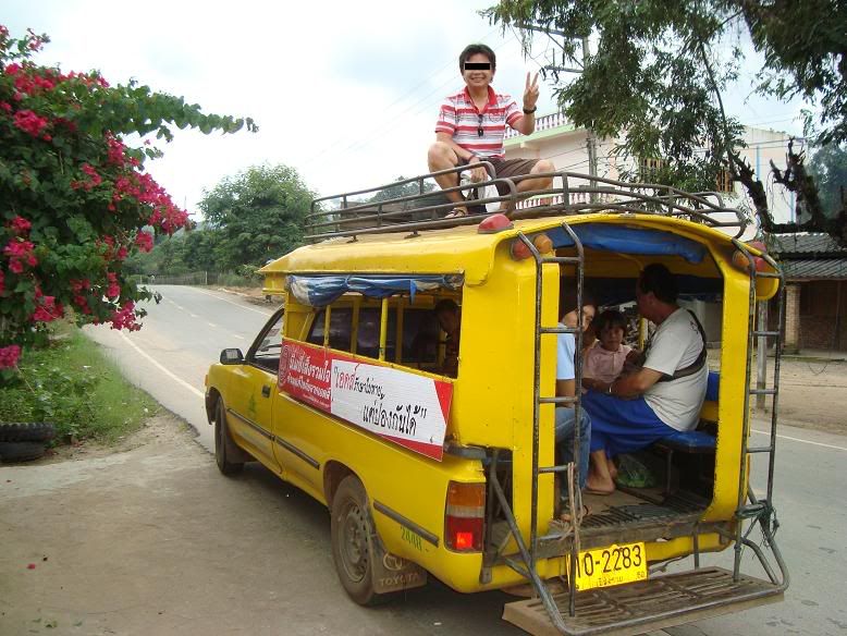 从Wawi去Chiang Mai,我们搭Song Tiaw 下山,为了捕捉更美丽的风景,朋友爬上车顶。。。我们看到的一部分照片就是他拍的。。。应该要跟他敬个礼。