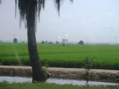 就在我开始要埋怨的时候,车子已经驶入一个小市镇,yeah!! 原来我们已经到了!!在大马路边就可以看到这样绿油油的稻田!!太壮观了!