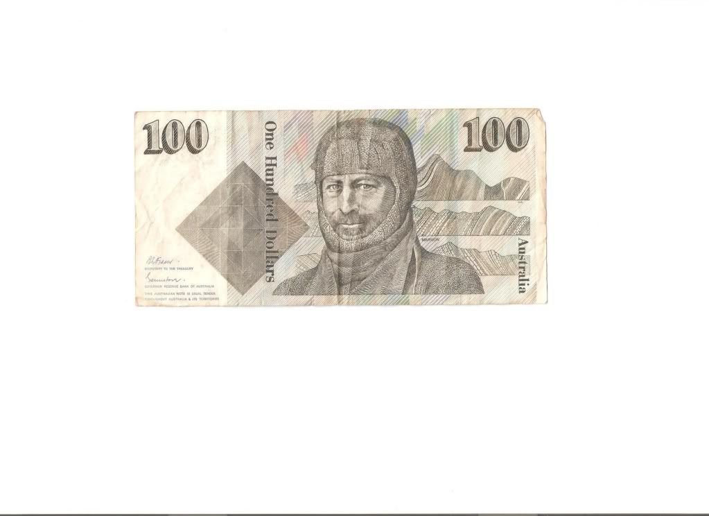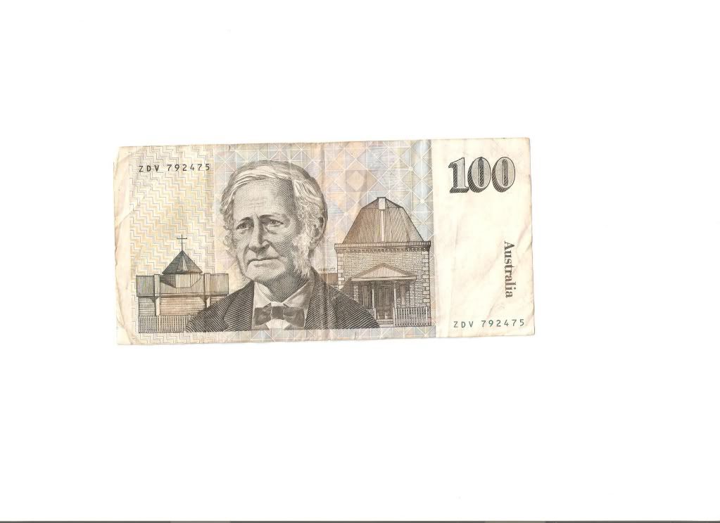 你这张澳币未必是真的,我看过 Reserve Bank of Australia 同款的是有颜色的。