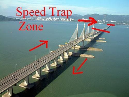 现在说槟城---->北海吧...一旦 Bayan lepas 那条路 + tesco 那条路 交叉后 一直到 桥中央 其实 也有 speed trap 这个 很明显...