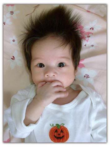 哇,好多头发哦,我家的宝宝也没这样多哦。。。已近快要六个月了后面的头发还是少少。。。 |