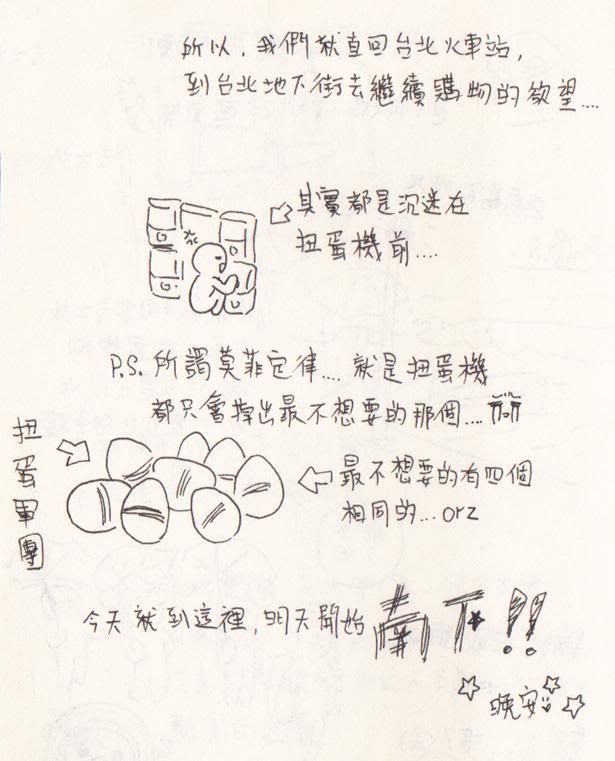 距離上次的一星期台灣之旅九個月後,我再次踏足台灣,執行15天鐵路環島之旅!!讓我可以實現我以下是計畫的行程,但是啊所謂計畫總是趕不上變化,僅供參考(被打) 3日(四) 10.15pm:桃園機場入境→台北市入住+宵夜 4日(五) 淡水老街→士林夜市→台北地下街 5日(六) 鶯歌車站→鶯歌陶瓷博物館→鶯歌老街→新竹車站→新竹鐵道藝術村→內灣車站→內灣老街→合興車站→九讚頭車站→九讚頭人文公社 6日(日) 三義車站→木雕博物館→勝興車站→台中車站→台中20號倉庫→彰化車站 7日(一) 大甲車站→大甲鎮瀾宮→清水車站→紫雲岩寺→梧棲觀光魚市→鹿港老街 8日(二) 集集車站→集集鐵路文化坊→明新書院→車埕車站→車埕車站建築→明潭水庫→嘉義車站→嘉義鐵道藝術村 9日(三) 台南車站→台南車站建築→府城隍廟→赤崁樓→祀典武廟→大天后宮→臺南孔子廟→安平古堡→左營車站→鳳山舊城→蓮池潭→高雄孔廟→高雄車站→高雄願景館 10日(四) 枋寮車站→屏東枋寮F3藝術特區→枋寮漁港→太麻里車站→第一道曙光紀念地→知本車站→史前文化博物館→台東鐵道藝術村 11日(五) 池上車站→全美池上便當→池上飯包博物館→鹿野高台→瑞穗車站→瑞穗牧場→志學車站→鱷魚潭風景區 12日(六) 花蓮車站→新城車站→太魯閣國家公園→清水斷崖 13日(日) 蘇澳車站→蘇澳冷泉→羅東車站→國立傳統藝術中心→頭城車站→頭城老街→北關海潮公園 14日(一) 福隆車站→福隆海水浴場→舊草嶺隧道→青桐車站→青桐老街→青桐石底舊礦場→太子賓館→日本宿舍→平溪老街→十分車站→十分老街→台灣煤礦博物館 15日(二) 瑞芳車站→黃金博物園區→黃金神社→九份老街→九份鄉土館→基隆車站→陽明海洋文化藝術館→二沙灣砲台→基隆廟口 16日(三) 台北→貓空→動物園→袖珍博物館→西門町 17日(四) 故宮博物館→桃園機場出境 紅字--->有去到的 -----------------------------------------我是分割線--------------------------------------------------------- 上面滿滿一堆字的行程,好像很充實,但是我告訴你,根本走不完!!如果要環全島,器是應該要兩個月,因為是在太多地方可以走,我有不想像跟旅行團一樣走馬看花,所以實際執行的時候有很多景點都被刪了,痛心啊!(友人道:其實是因為你們太悠閒了吧= =) 我很喜歡懷舊的氣氛(好啦我是老人),行程景點大多數都是選擇往老街、古蹟,以及鐵路藝術村走,因此,使用火車這個大眾交通是最好的選擇,大多數老街都在鐵路附近. 另外,我這次的旅行可以成行,是因為參加了台灣青輔會所舉辦的【第二屆青年壯遊家大募集】(http://www.youthtravel.tw/),是真的喔,寫旅遊計畫書就有機會得到獎金實現夢想,下一屆大家不要錯過了! |