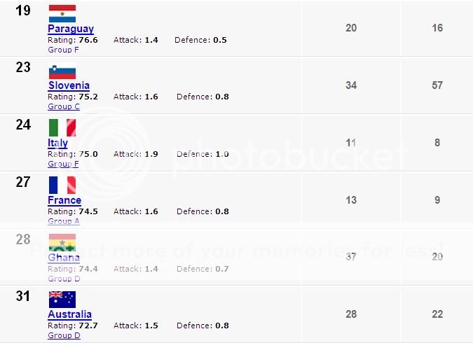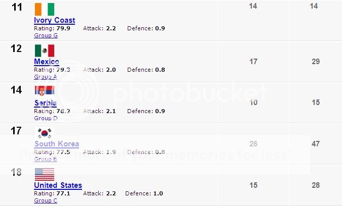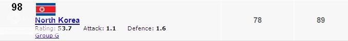 巴西依然火力最强 , 朝鲜有待提升 ,法国, 意大利最差强人意