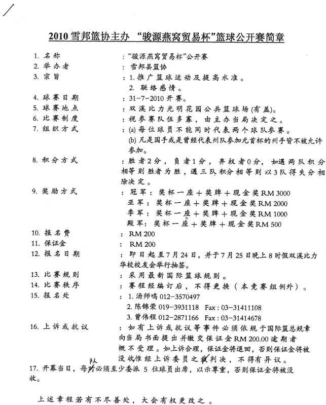 雪邦篮协公开赛,欢迎参加!!!(表格已UPLOAD)