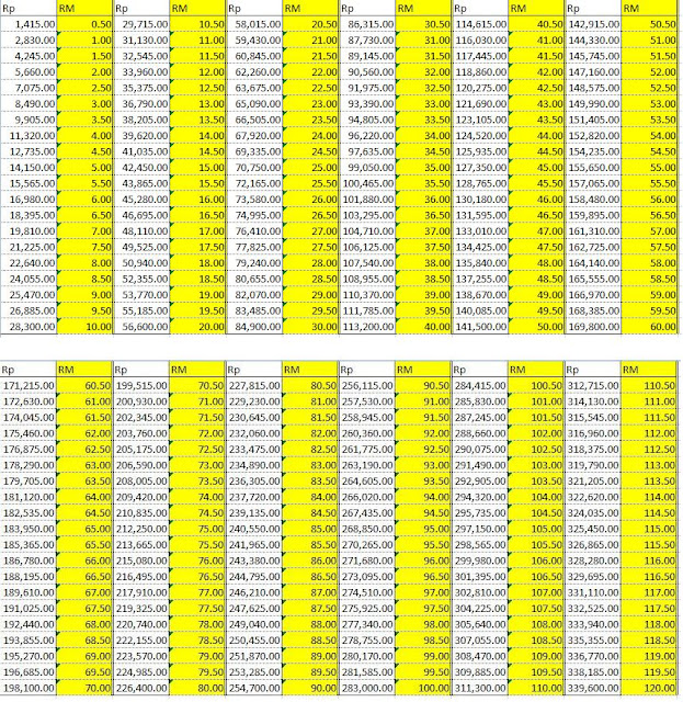 出发前换到的汇率是 RM 1=Rp 2,830