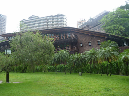树林中的北投圖書館,造型漂亮极了,是臺灣首座綠建築圖書館.