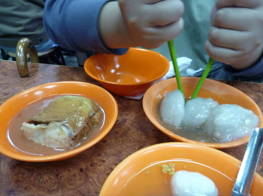 途中经过一间魚丸店,小妹说她一定要吃这家的魚丸.