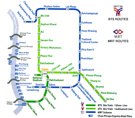 主要分为Silom Line 和 Sukhumvit Line,转换站在Siam站