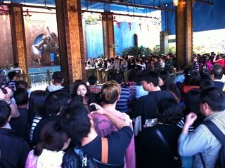 过后,我们又从尖沙咀搬到炮台山。放下行李后,就赶到海洋公园巴士接待站。到了那里,才发现巴士站竟然没有什么人,原来海洋公园10am开门,1.30pm已经被挤爆了。到了海洋公园的旅客,尤其当场买不到票的都感到气愤。还好我们一早就把票订好。不然到了那里,有钱都没有票进门。