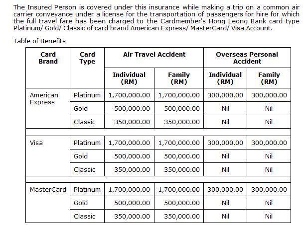 不是单单HLB有而已,可以阅读信用卡agreement的小册子,里面有提到的。只要机票是通过银行的信用卡过账 ...
