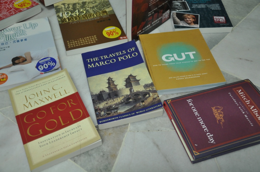 一接到消息的我,馬上取出櫃子裡僅剩的100大元(之前新年時所存留下來的紅包錢/.\),風馳電擎地趕去了SummitUSJ。結果真是令人心花怒放,太多太多好書了~不過其實這還不算太要緊,畢竟很多書店都有很多好書,但是這些書籍的價錢真是便宜到跟舊報紙的價錢差不多,套用我文章中的標題,簡直就是便宜到瘋了!