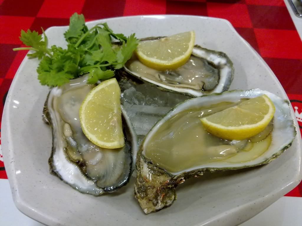 后来第一次吃生蚝,是在Mid Valley三楼的日本餐厅“樱菊”,六粒,不算很大,RM75+。第一次吃,还是有点不习惯,觉得恶心,硬死地咽了下去。