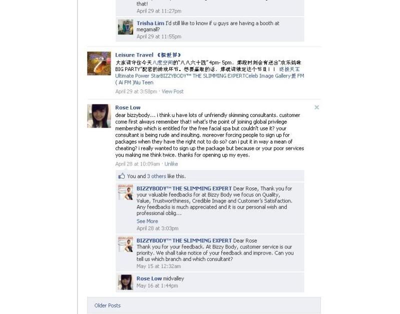 Bxzzybody:你打算签哪一个配套? 我:我要看下你们的服务如何先才可以决定。 Bxzzybody:你看什么叻?呵呵,我们的feedback都很好啊。 我:er.. .. .. Bxzzybody:你是怎样看我们的feedback? 我:Facebook Bxzzybody: 哦,我刚才才上,很好啊。没有问题啊。有时你要知道我们是可以control我们的feedback的,我们可以edit的。我看到全部都很好啊,你考虑什么叻? 我:你没有看到有人骂你们? Bxzzybody:哦,没有哦。但是你要明白有时候不是我们的问题,可能顾客的要求过高但我们其实做到很好。每个人可能交流方法不一样。。。 讲一大堆。。。 最后。。。 Bxzzybody: 哦,现在不是我不要给你1st trial而是阿,你做了一次出去没有效果等下人家觉得我们不好,你的1st trial配我给你的配套一起就没问题了。所以怎样? 我: 还是要考虑下。。 Bxzzybody: 哦,将没关系拉,等你考虑完要签我们的配套那时,你再回来我再送你`1sttrial啦。
