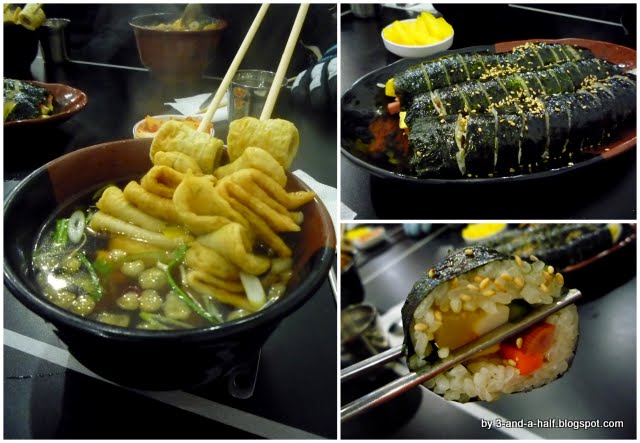 好不容易到了晚餐時間.我們在雪場裡的餐廳享用簡單的晚餐 – 甜不辣+ 海苔飯捲 = KRW 8000