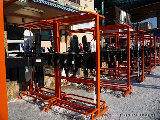 滑雪設備的投幣式locker. 供人休息時鎖雪橇的地方