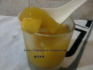 2/3的芒果丁加入250ml清水 ,搅拌成泥,过滤备用