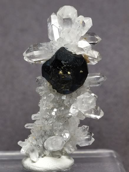 黑白對比. 水晶就像棒球賽的捕手,把飛來的閃鋅礦接個正著. |