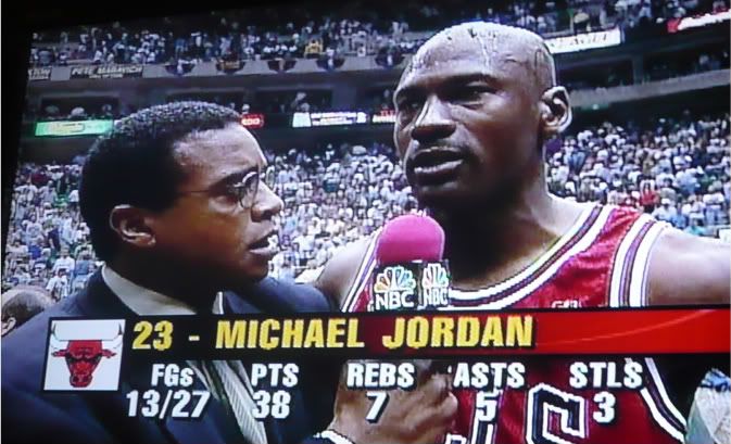 我个人是比较欣赏后期第二连霸时期的乔丹,由于岁月的增长和体能的下降,这个时期的乔丹多数只用一些假动作配合他高命中率的后仰跳投...啊,单单想一下就high了,我如果能拥有的话还得了??  |