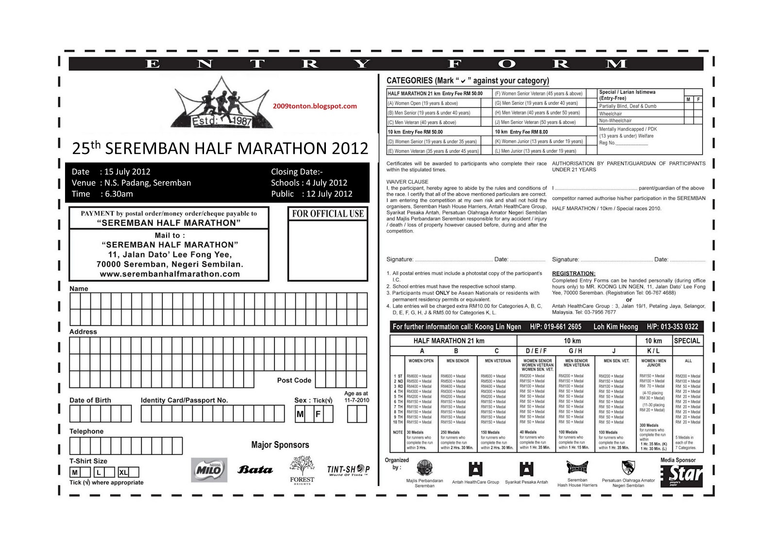 2. 备注:近年来的报名费,2009: RM10,2010: RM12,2011: RM15,2012: RM50