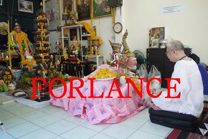 (Wat’mahatat僧王照坤查)正为大二爷伯佛牌加持(僧王为此牌加持的时候,见到神明现身