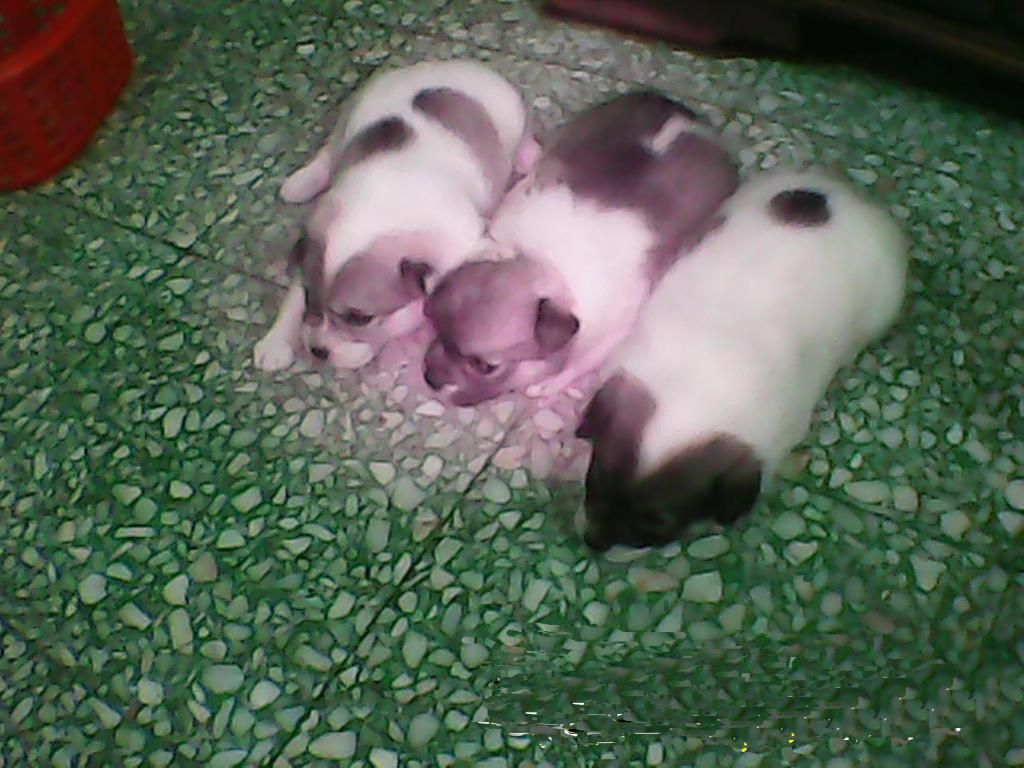 之前二隻雄的已被领养。这是另一隻妈妈生的一男二女!全是同样胎印!证明牠们不是普通菜狗!