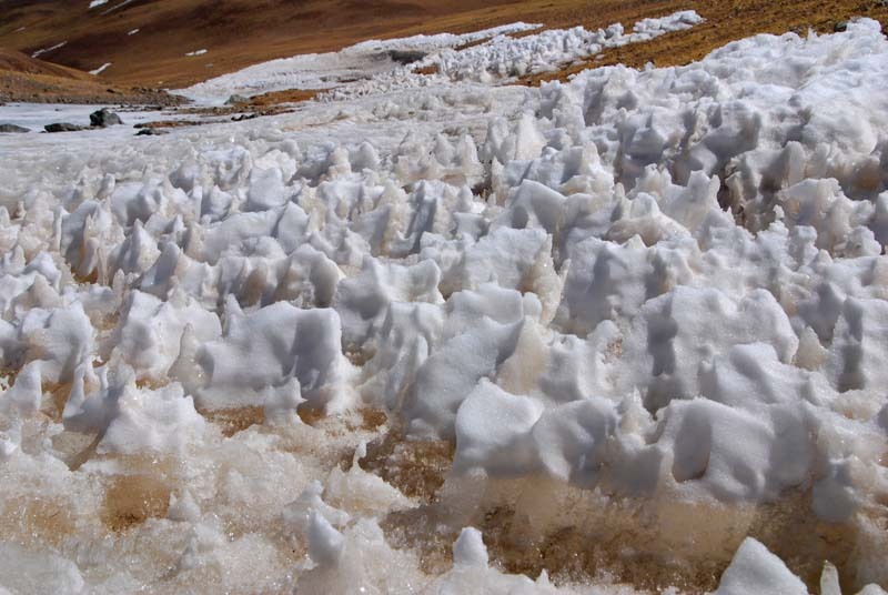 谷地里的积雪被大风吹成尖锥装