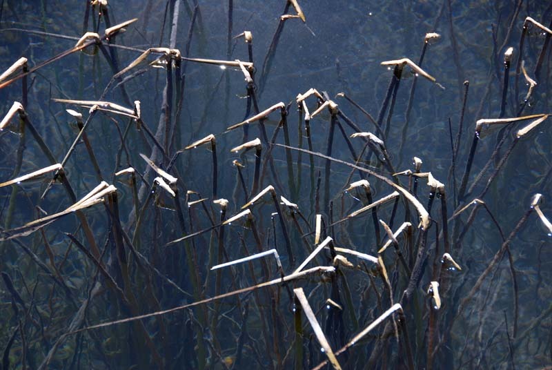湿地中泉眼众多,是恒温的地下水,所以外面世界一片冰冻,水里却春意盎然,水草,游鱼……这是我在海拔5200米高原唯一见此的独特地貌。