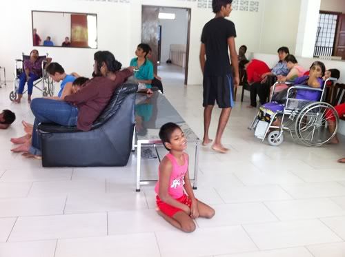 Vinashini Home的最后一张图,最左边的那位男生原本是大学生,后来上大二时,一场病害的他脑里的大筋断了。行动跟说话有问题,被家人遗弃材被送到那里。那穿位红蓝衣的老uncle,很喜欢跟人握手和炫耀他的手机,可是就是没什么记性,转过身又忘了你是谁。LZ有看见一位大概十来岁的华人小孩,他是一位过动儿,全身布满自己抓伤的“战绩”? |