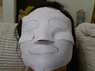 今天敷了,隔了差不多45分钟才拍照。因为卖家说面膜里有氧分能帮你面部血液循环(是氧气的氧哦),当你用完了立刻拍照会看到脸有点红,不过过一阵子就不会那么红。所以我隔一段时间才拍。