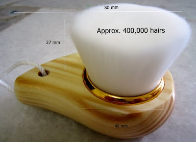 Benefits and Characteristics1. 2 X cleaner than using with hands. 2. Micro fine bristles 0.045mm thickness. 3. Approx. 400,000 soft bristles are densely aligned on the brush head for stable pressure without irritation.( feel like goat hairs texture) 4. Safe and suitable for all skin types. Please view the MSDS below. Its soft texture bristles are made of strong and elastic synthetic fiber "Polybutylene Terephthalate" See the picture of the granules in Test Report below. 5. High grade New Zealand Pine Wood handle. Resistant to rot, warp or check (anti reput, bengkok atau retak) * see below.