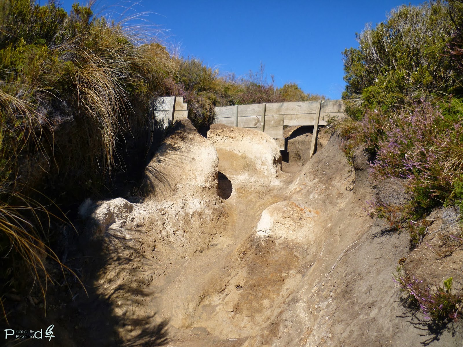 第一天的行程其实是比较轻松的,从Whakapapa Village去到Mangatepopo Hut就只是8.5公里,官方资料是3小时30分钟就可以完成,而我们也大概花了3小时多,可以看得出官方资料是蛮准确的。这一天的行程并没有太多特别的景色,主要就是让自己身体适应适应。今天的天气也出奇的好,基本就是适合健行的天气。路上的有些步道因为被雨水冲击,导致有些许损坏,健行者需要自己小心。总结来说,这部分的步道还算容易和简单,不会有太多考验健行者的地方。