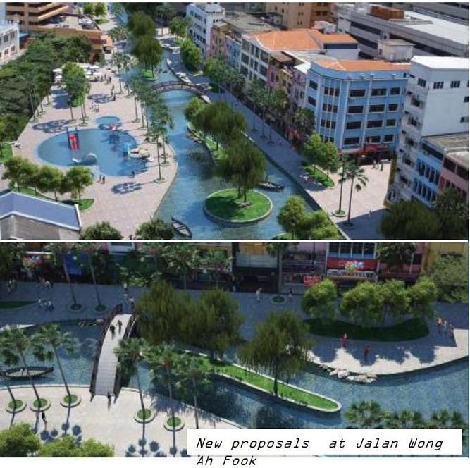 在 Jalan Wong Ah Fook 的发展课题方面,我找不到我去年看过的柔佛州政府的发展蓝图(本来是2014年开始,2015年完成)。不过这个蓝图(现在是变成概念图)还是有出现在今年六月的 Johor Bahru World City Conference 2014里(link, page 21),我把这张图摘录在下面。