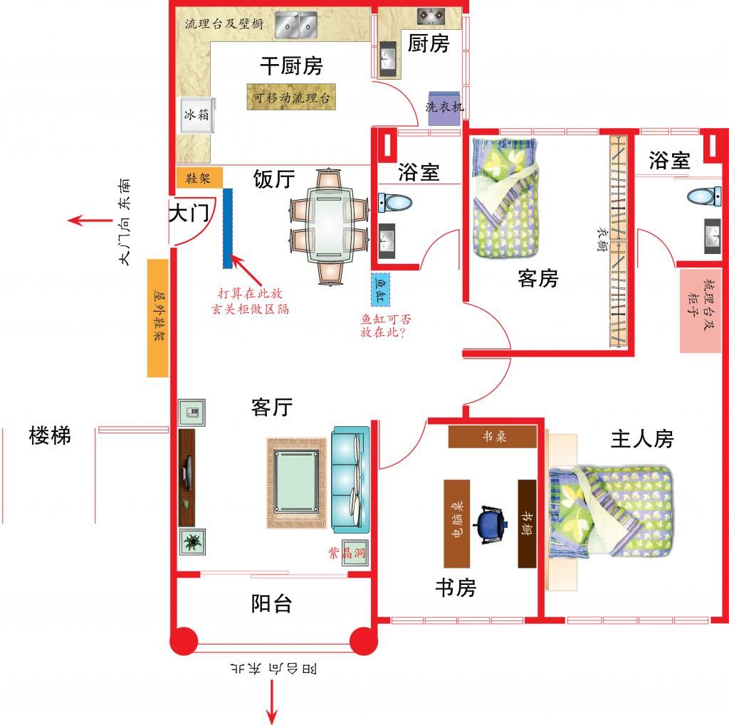 麻烦各位懂风水学的师兄姐们帮忙探讨我家的风水摆设,感恩不尽